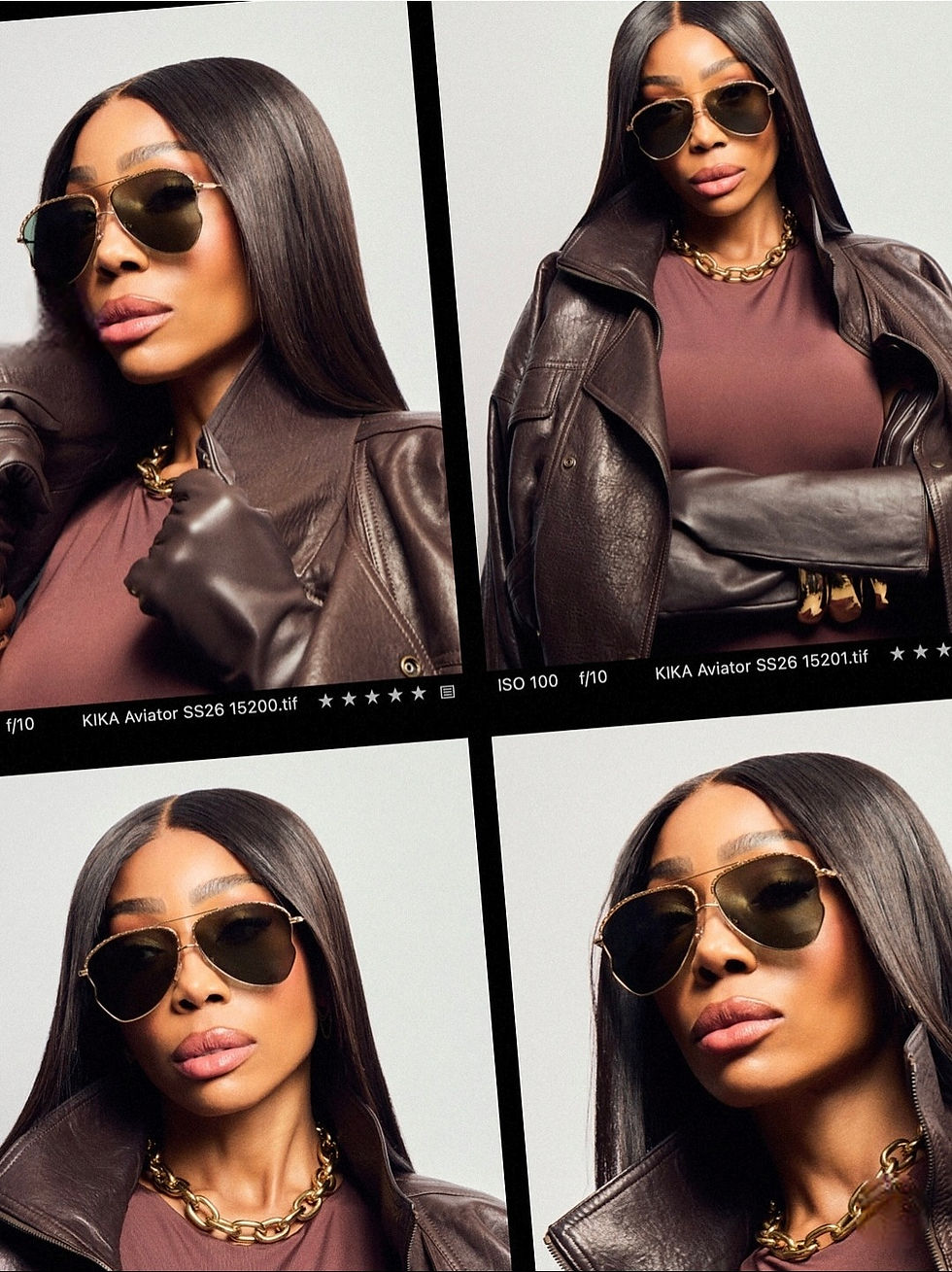 Serial entrepreneur Kika Osunde steps into her design era with a sleek, elevated collaboration with Linda Farrow, delivering a refined take on classic aviators. The Mendoza frames are sharp, confident, and quietly commanding-much like the woman behind them.