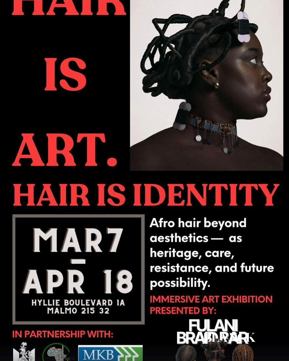 Fulani Braid Bar presents Hair Is Art, a new exhibition that explores Afro hair as an artistic medium and a source of cultural knowledge, education and self-definition. Opening on March 7, 2026 at Hyllie Boulevard 1A, the exhibition runs through April 18 and invites visitors to experience Afro hair beyond aesthetics, as heritage, care and identity.